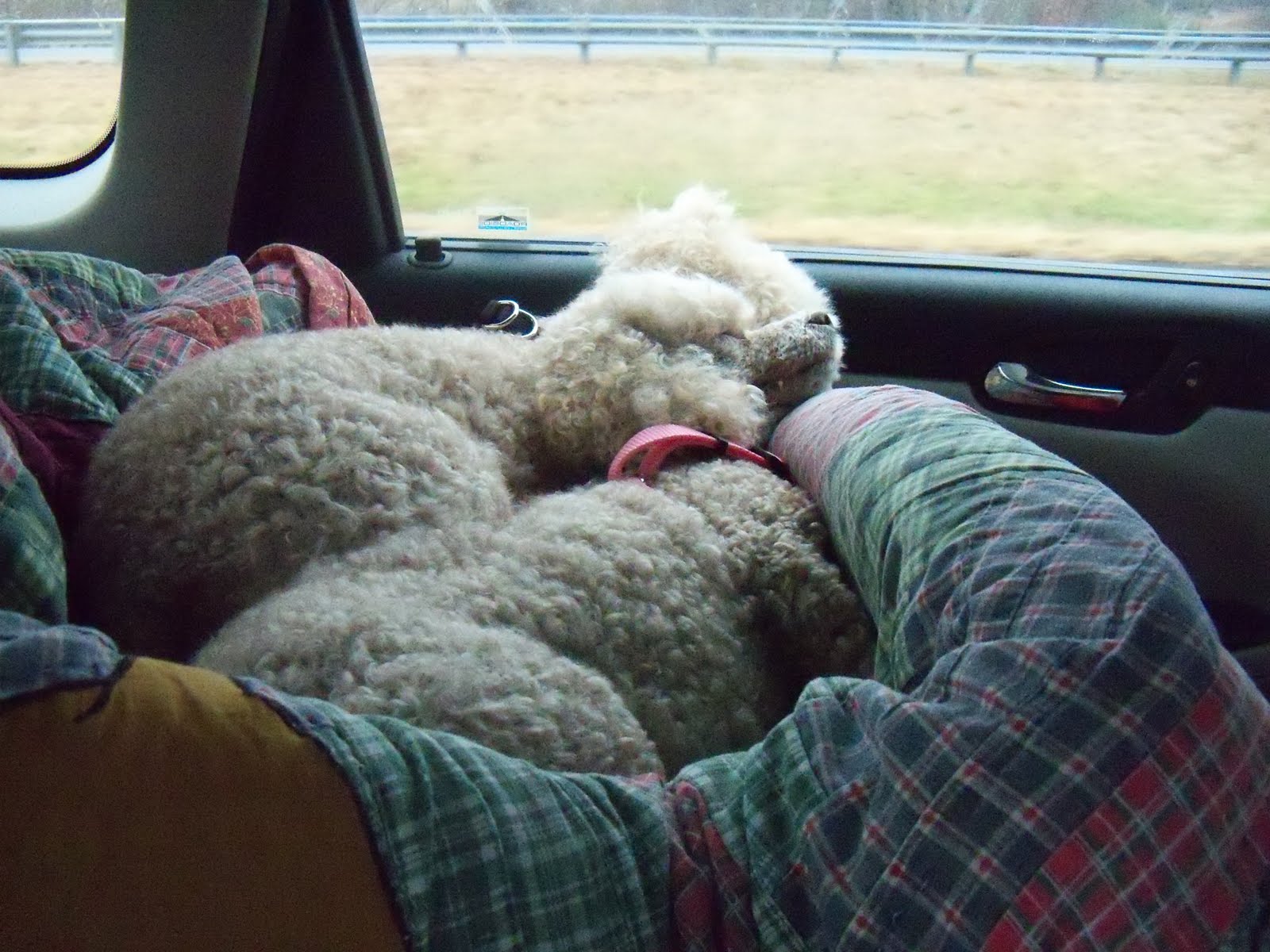 This is Cole a pomeranian from a GA shelter and going to rescue in IL. He was furry scared and was a little drooley. He stopped soon after he got in the car with us. He felt safe I guess.
