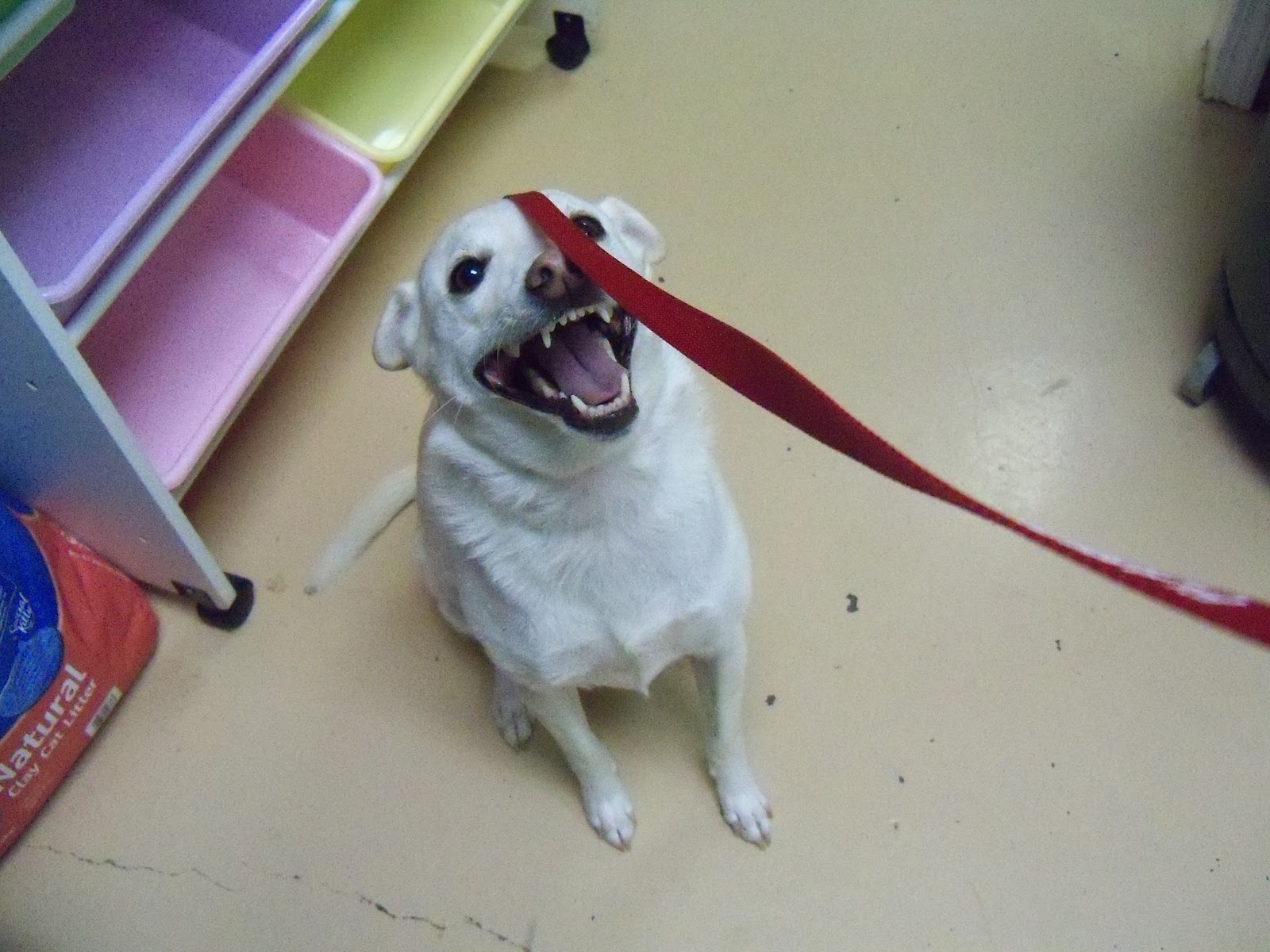 Oh my! Look who is boarding and unhappy! Yep Doggy Nanny went on a trip to TX so the pups couldn't stay home alone! So my mom (Mollie and Bobo's Grandma) brought them to the clinic as she left for work. They were not happy to say the least and Mollie resorted to biting my fingers again to show her unhappy-ness.